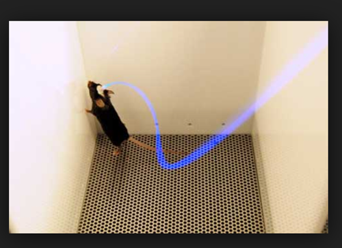 通过植入纤维或在大脑中产生光敏分子等光遗传学手段改造的小鼠,这是斯坦福大学发明的技术