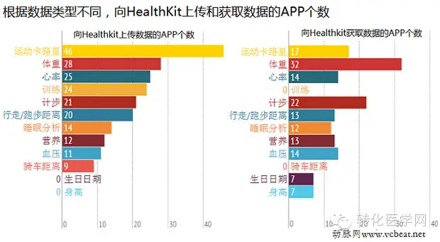 在这137款健康应用中,有些仅仅是从HealthKit中获取数据,而有些则是为HealthKit提供数据以供其他相关应用使用。大约20%的应用可以同时做这两项工作。