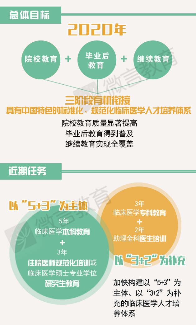 第二,加快构建硕士研究生培养与住院医生规范化培训紧密衔接的教育制度。这是此次改革最重要的着力点。要完善体制机制,改革入学制度和培养模式,创新教学方法和考核方式,将研究生培养过程与住院医师规范化培训过程紧密衔接,确保合格的毕业生可获得执业医师资格证、住院医师规范化培训合格证书、研究生毕业证和学位证等4个证书。要调整7年制,从2015年起就要全面实施,学生在完成5年学习并考核合格后,可免试进入临床医学硕士专业学位研究生阶段学习,纳入招生单位当年硕士研究生招生计划。要改革同等学力人员申请学位办法,针对5年制医学本科毕业并取得住院医师规范化培训合格证书的临床医师,为他们多样化选择、多途径成才搭建“立交桥”。积极探索临床医学博士专业学位研究生培养与专科医师规范化培训紧密衔接的“5+3+X”临床医学人才培养制度。