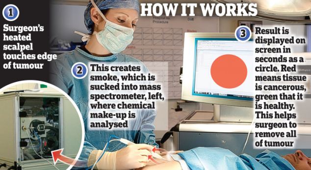 他对于这个问题的解答就是自己发明的iKnife,这种新型外科手术设备能够帮助医生辨别所移除的组织是否有了癌变。