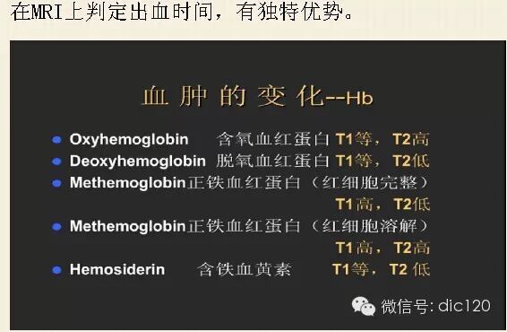 1.超级性期(6小时以内):血肿内红细胞完整,主要含有氧合血红蛋白。