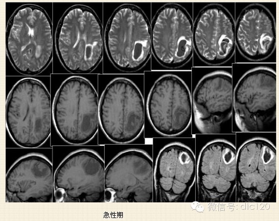 2.急性期(7-72小时):红细胞脱水萎缩,主要含有脱氧血红蛋白,此期灶周水肿,占位效应明显。