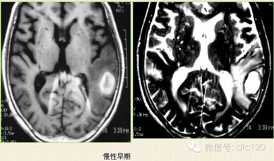 3.亚急性期(3天-2周):红细胞内主要为正铁血红蛋白,水肿及占位效应减轻。