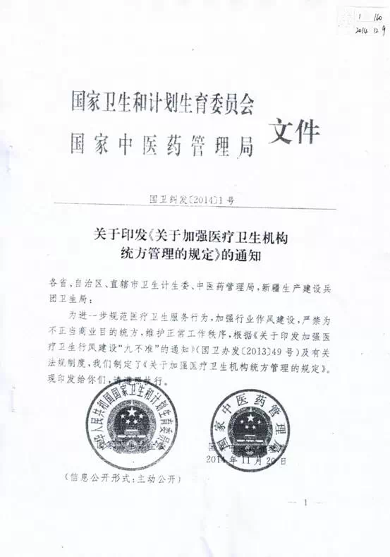 下面是医院刊登的卫计委和中医药管理局通知原文: