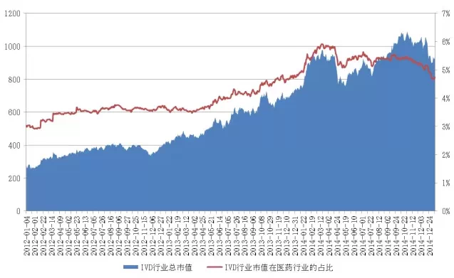图表 4:IVD行业市值,以及在医药行业的占比,数据来源:WIND,东兴证券研究所