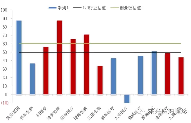 图表 7:IVD指数样本估值(TTM)(蓝、红分别为中小板和创业板公司),数据来源:WIND,东兴证券研究所