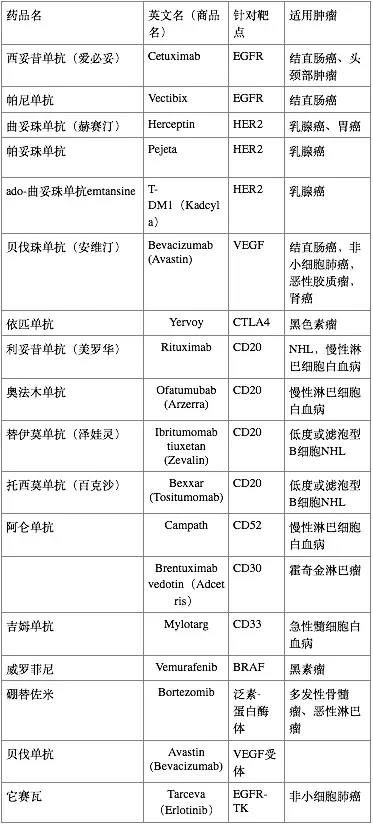 类似这样的靶向治疗药物还有很多种,目前美国FDA审批过使用较多的靶向药有: