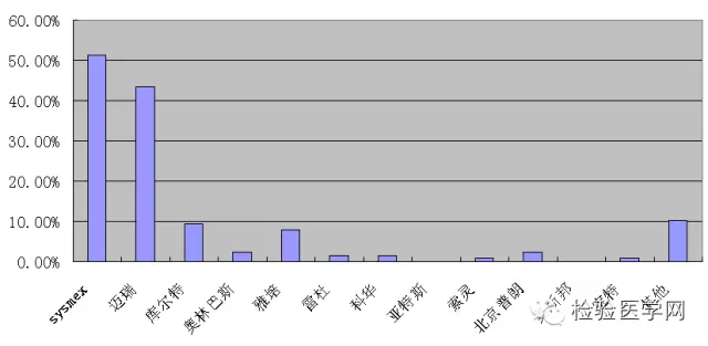 血液分析仪各品牌在检验科占有率,迈瑞表现不错。