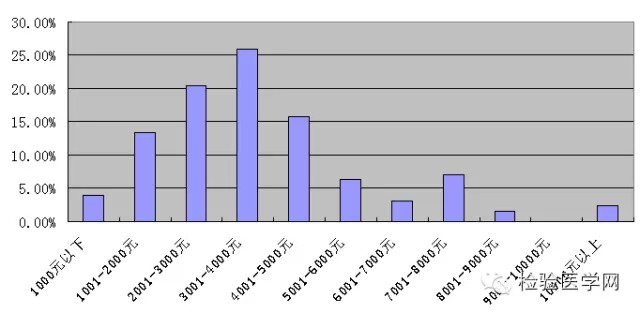 检验人员收入情况,大部分每月收入3001-4000大洋。