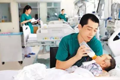 给婴儿喂奶的男护士
