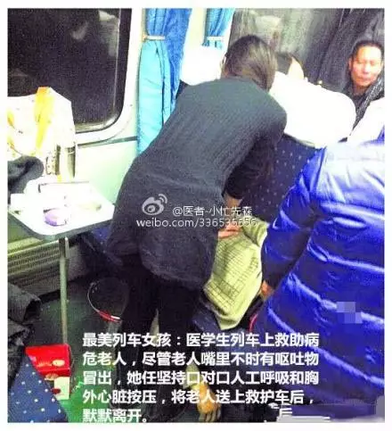 第八张:这个美丽的女孩还是个医学生,但是在素不相识的患者面前,她还是伸出了双手,因为她的努力,患者的生命得到了延续。