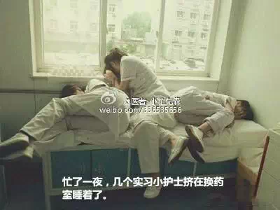 第三张:小护士生病了,由于人手少,只能带病工作,虽然这是不应该提倡的,但事实就是这样,很多医护人员都是带病工作。