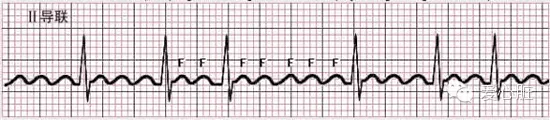1、P波消失,代之以大小不等的f波代替,频率360~600次/分。