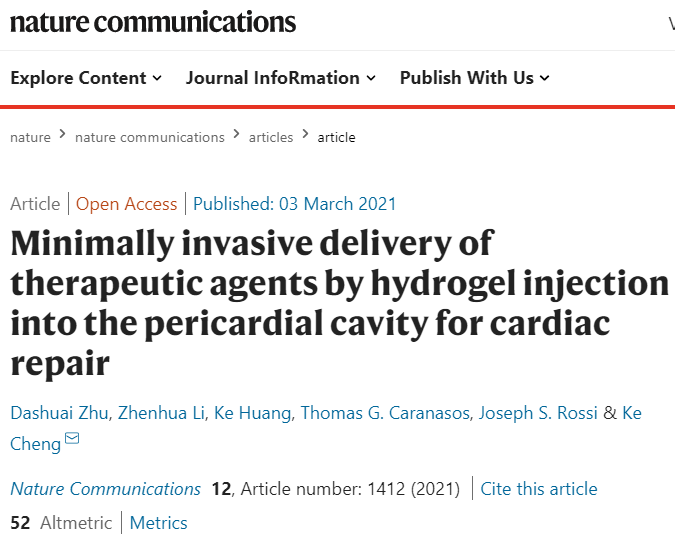 【Nature子刊】心包内注射水凝胶,可减轻免疫反应并增加治疗剂的心脏保留率