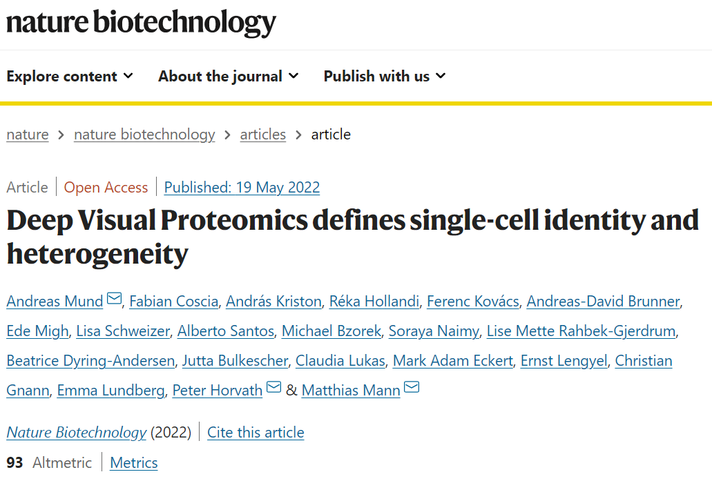 近期研究“Deep Visual Proteomics defines single-cell identity and heterogeneity”发表在《Nature Biotechnology》杂志上,证明了深度视觉蛋白质组学技术首次应用于癌细胞的潜力。该研究将肿瘤的视觉特征与深度分析技术相结合,以可视化与周围健康细胞相邻的畸变细胞中的蛋白质特征。这将使研究人员对疾病有前所未有的认识,并指导肿瘤学家制定诊断和治疗的巧妙策略。