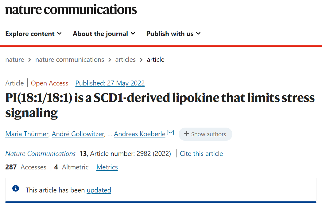 因斯布鲁克大学Michael Popp研究所的Andreas Koeberle领导的一个国际研究小组联盟现在已经能够证明一种名为PI(18:1/18:1)的膜脂质显著参与了这一过程。这项研究“PI(18:1/18:1) is a SCD1-derived lipokine that limits stress signaling”发表在杂志《Nature Communications》上,开辟了许多有趣的医学可能性。