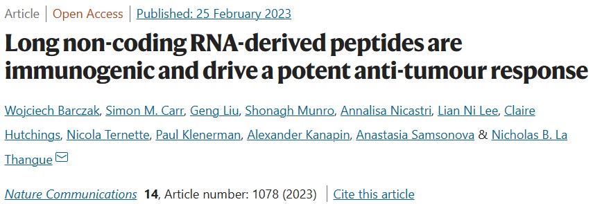 研究论文“Long non-coding RNA-derived peptides are immunogenic and drive a potent anti-tumour response”于近日发表在《Nature Communications》上,最终结果表明lncRNA基因编码可作为癌症疫苗部署的免疫原性肽。