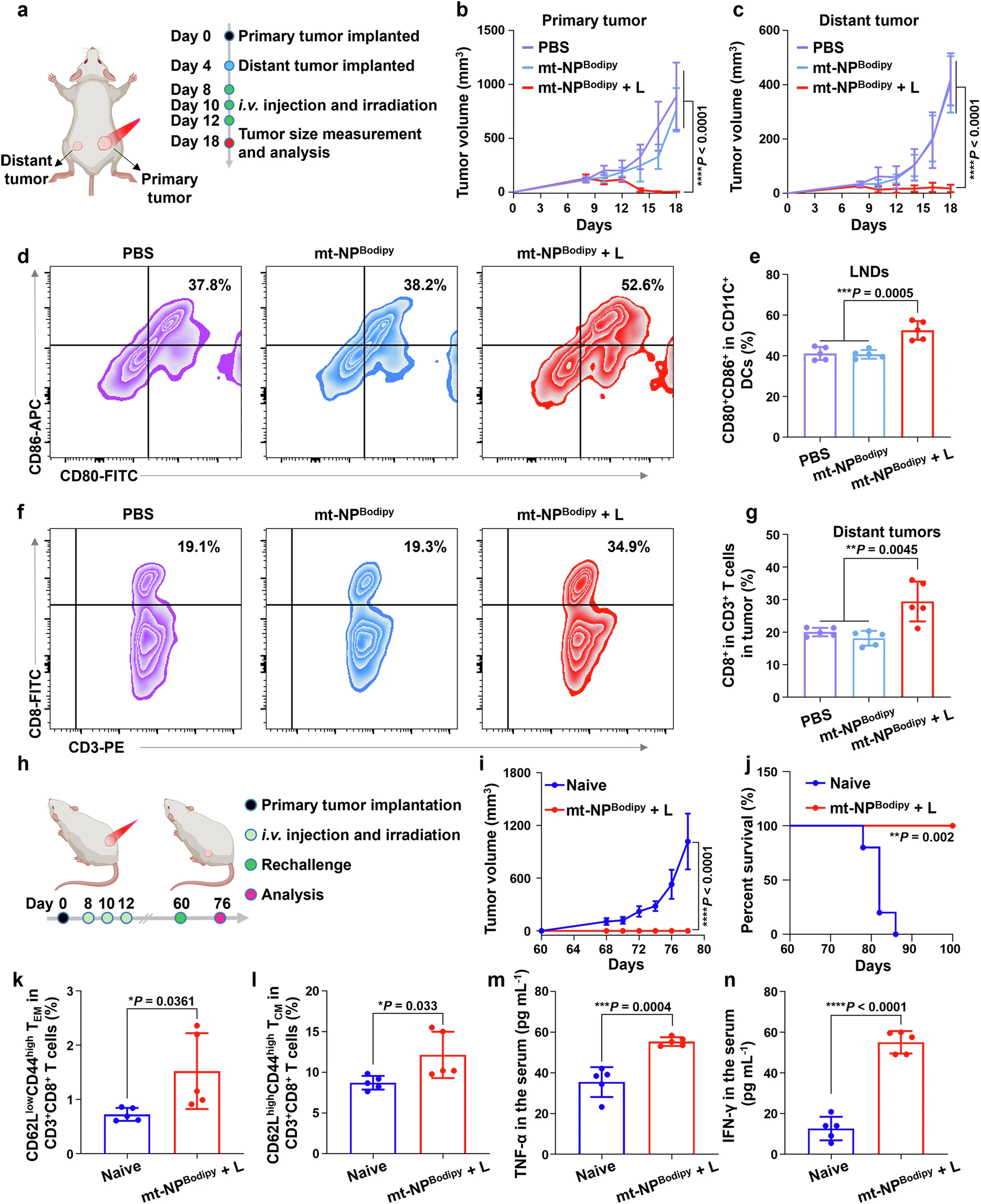 mt-NP消除远处肿瘤,并诱导长期免疫记忆效应。