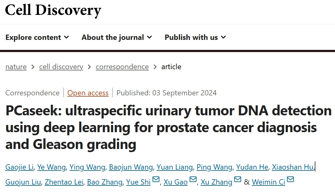 【Nature子刊】 中国科学院慈维敏团队:深度学习模型助力前列腺癌诊断,实现超特异性尿路肿瘤DNA检测及Gleason评分