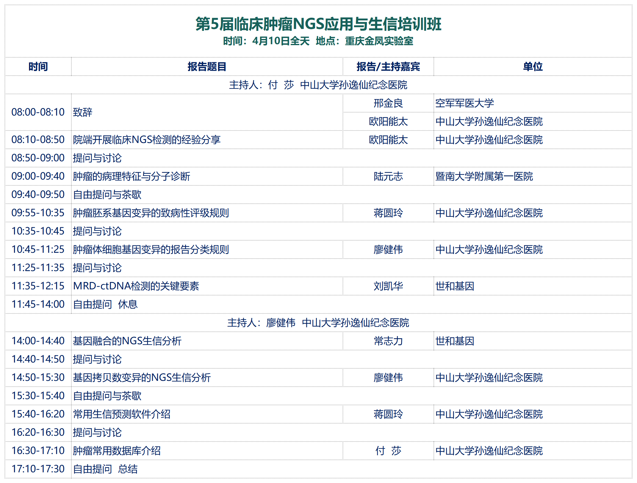 (5)注册并缴费参加2025CCTB大会的代表可以免费参加“第5届临床肿瘤NGS应用与生信培训班”,限80名参加,先到先得(点击了解详情)。