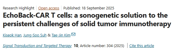 近日,韩国釜山大学研究团队在期刊《Signal Transduction and Targeted Therapy》上发表了研究论文,题为“EchoBack-CAR T cells: a sonogenetic solution to the persistent challenges of solid tumor immunotherapy”,本研究中,研究人员阐述了EchoBack-CAR,这是一种声动力嵌合抗原受体 T 细胞平台,能够利用聚焦超声(FUS)实现对嵌合抗原受体表达的远程、时空激活。通过将进化而来的热诱导启动子与合成正反馈回路相结合,EchoBack-CAR 实现了强大的抗肿瘤效果,同时将肿瘤外毒性降至最低。该系统为治疗实体瘤提供了一种有前景的解决方案,实体瘤一直是传统 CAR-T 疗法面临的重大挑战。