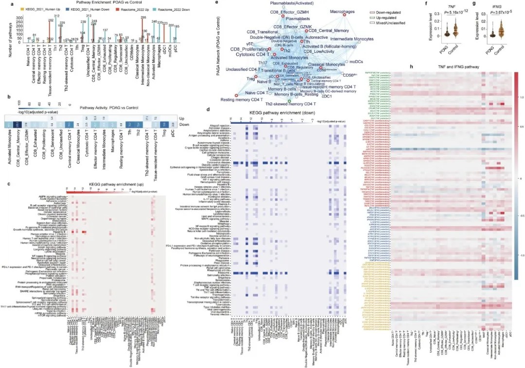 POAG患者循环免疫细胞存在广泛且细胞类型特异性的通路失调