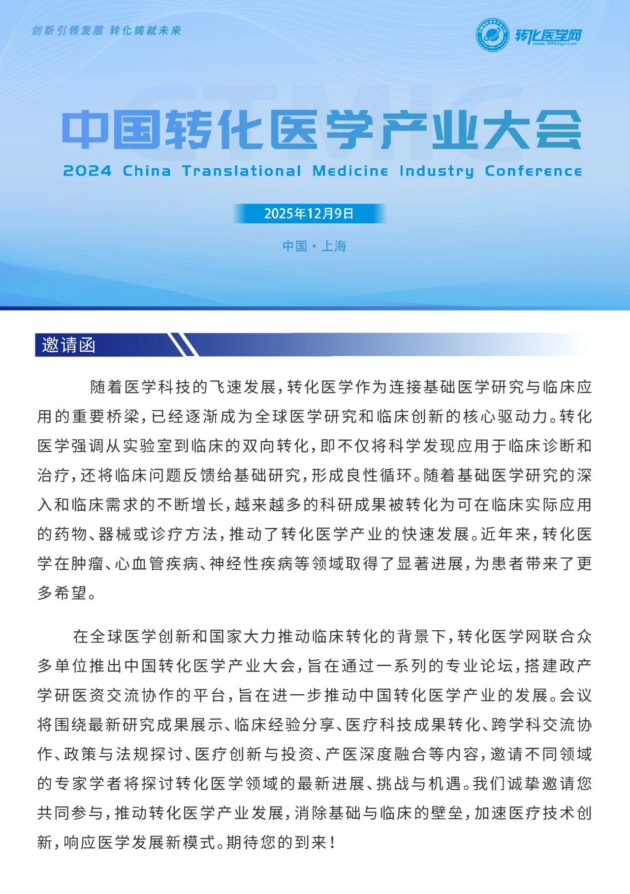 【招商函】2025转化医学周:交叉创新·临床转化·产业协同全链条推动产业发展,诚邀合作伙伴参与!