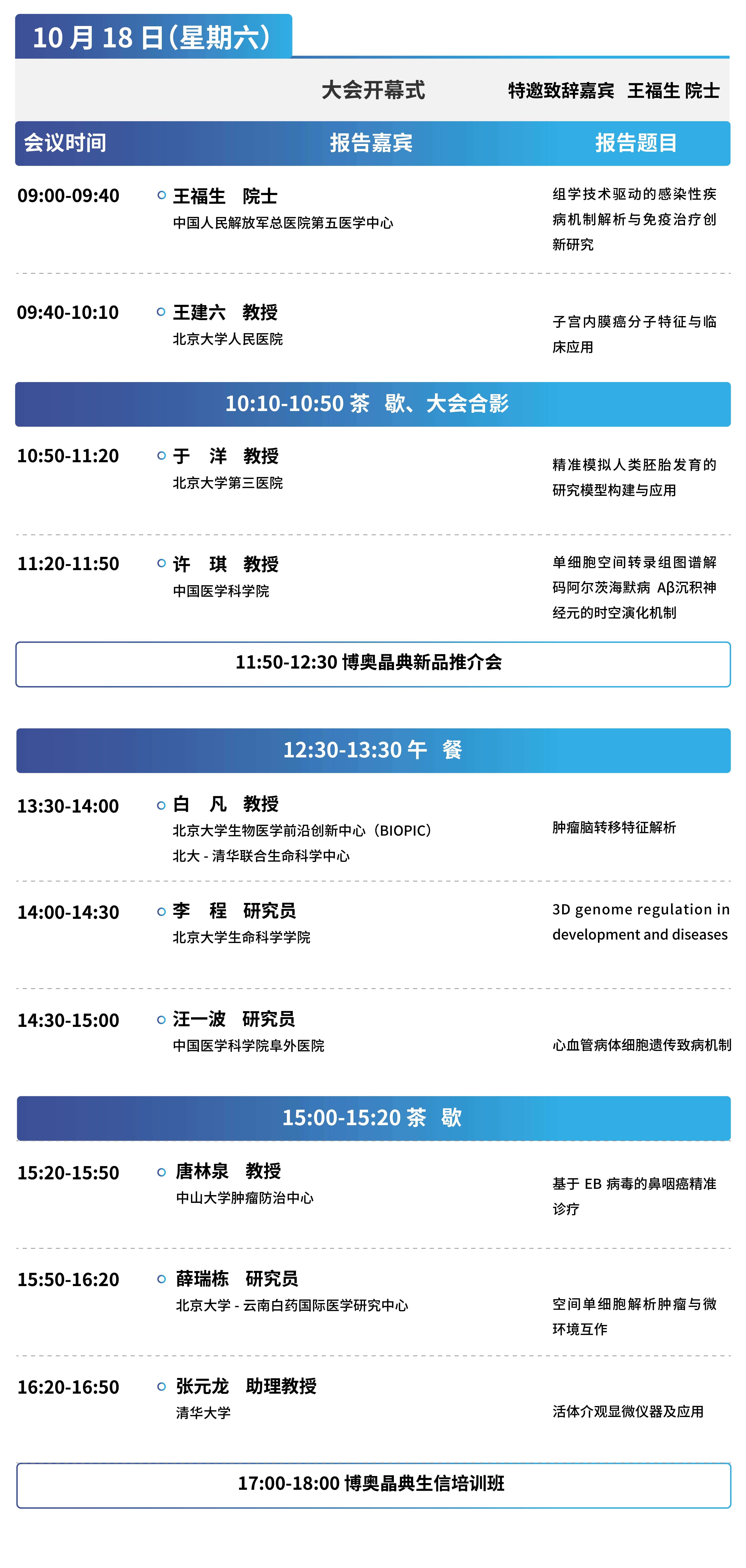 | 导读 | 最新日程抢先看!2025年10月18日,由北京博奥晶典生物技术有限公司(以下简称“博奥晶典”)主办的第八届“单细胞时空组学技术高端研讨会”将在北京隆重召开。 |