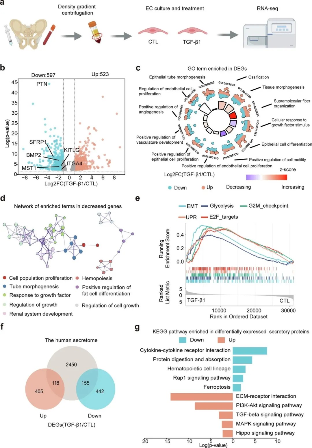 3. 多组学分析:TGF-β1重塑内皮分泌组,阻断关键信号通路