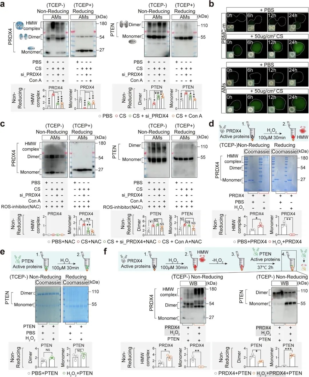 首次明确PRDX4是PTEN的上游调控因子,揭示了其在巨噬细胞激活与纤维化中的核心作用;