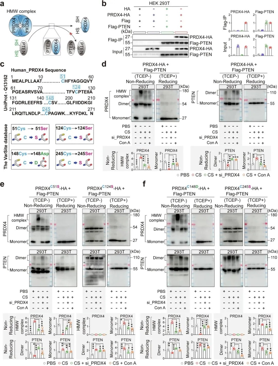 PRDX4寡聚体中的Cys124与Cys245调控PTEN二聚体的形成