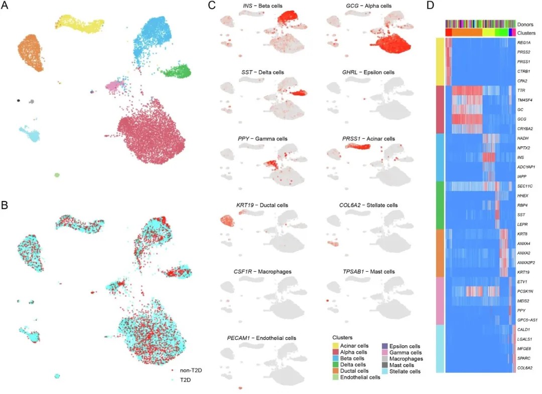 2型糖尿病(T2D)的核心病理是胰岛激素分泌失衡,尤其是胰岛β细胞胰岛素分泌不足,但长期以来,学界对不同胰岛细胞类型的功能异常机制始终缺乏共识。近日,一项发表于《Nature Communications》的研究,通过差异基因协调网络分析(dGCNA)这一创新方法,首次从单细胞水平解析了T2D患者胰岛β细胞与α细胞的特异性基因调控异常,为理解疾病机制及开发精准疗法提供了全新视角。