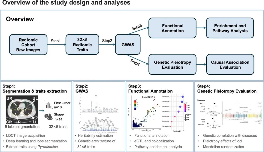 肺是人体最复杂的器官之一,左右肺分为不同肺叶,各叶的血流、通气、代谢及疾病易感性差异显著。肺部CT影像的纹理、密度、形状等特征,早已被证实与慢性呼吸道疾病密切相关,但这些特征的遗传基础却长期模糊——尤其是不同肺叶的结构差异由哪些基因调控?肺部结构如何影响疾病发生?这些问题亟待解答。