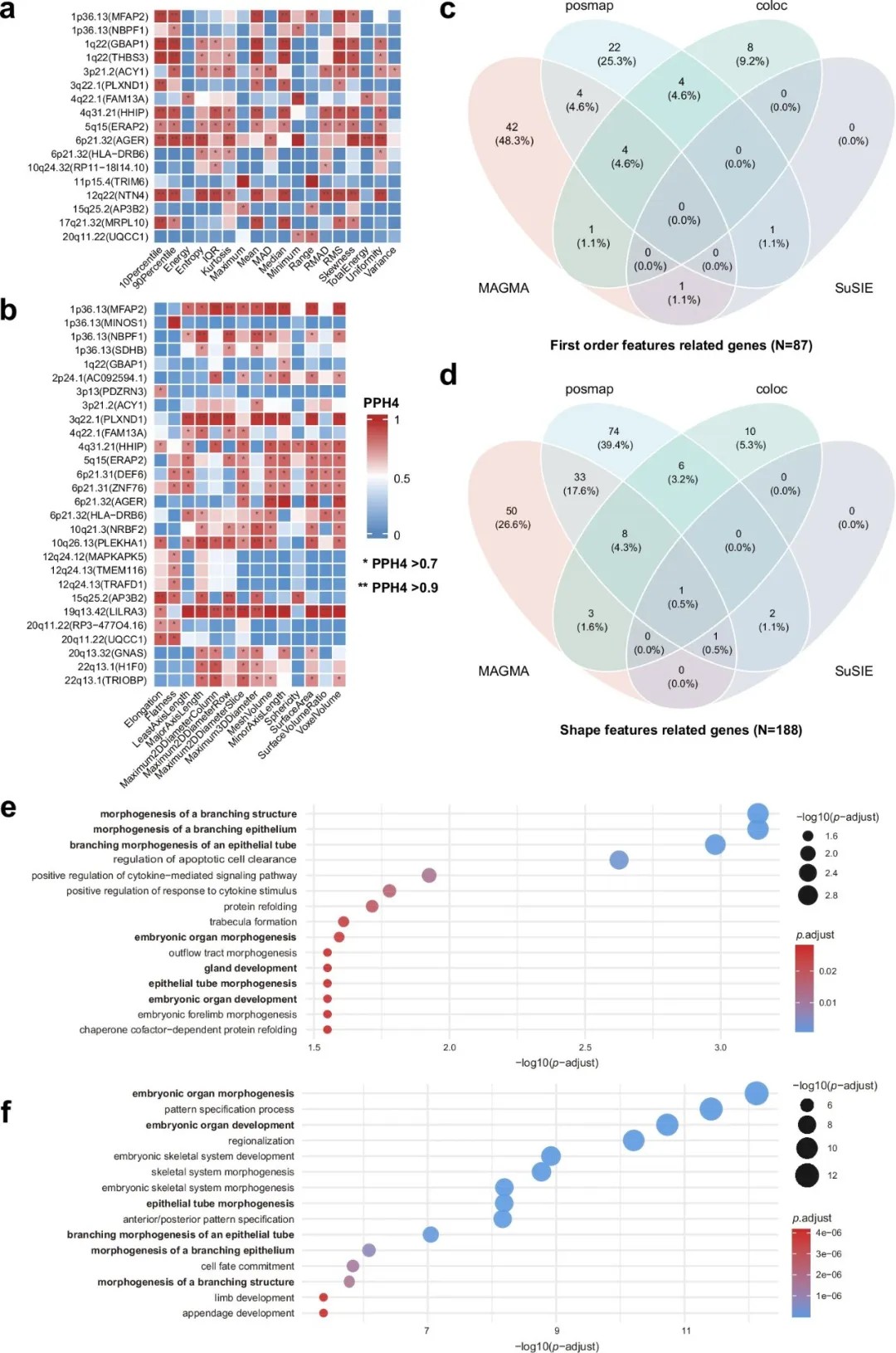 肺部影像一阶特征与形态特征的全基因组关联分析结果图