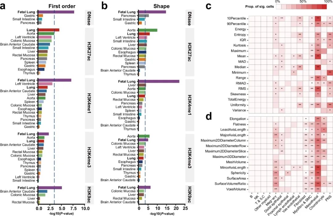 所有显著位点均富集于胎儿肺发育相关通路(如分支形态发生、上皮管形态发生),且非编码SNP显著富集在胎儿肺的调控元件。这说明,胎儿期的基因调控会塑造成人肺的结构。