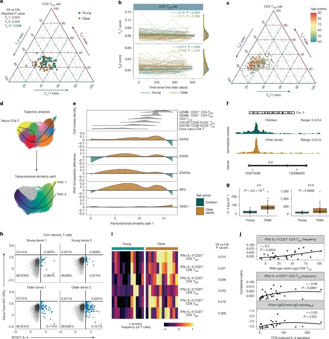 为何老人接种流感疫苗后抗体水平更低?研究指向记忆T细胞的TH2偏向性:随着年龄增长,记忆CD4 T细胞的GATA3活性显著上升,导致细胞自发分泌IL-4增多;IL-4作用于B细胞,改变其IgG类别转换——老年人的记忆B细胞更倾向于产生IgG2,而非保护力更强的IgG1/IgG3;