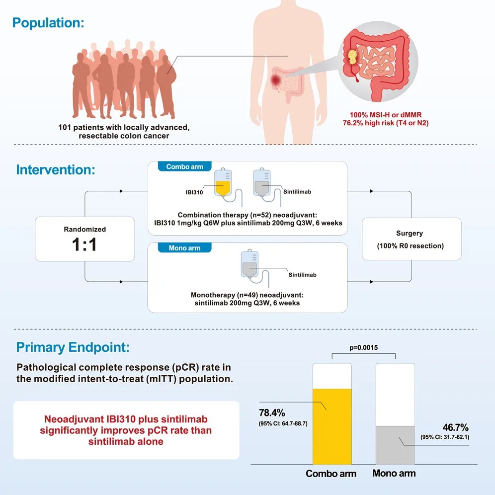 一项具有突破意义的临床研究传来捷报——在局部晚期微卫星高度不稳定(MSI-H)或错配修复缺陷(dMMR)结肠癌患者中,采用我国自主研发的创新药物组合(抗CTLA-4抗体IBI310联合抗PD-1抗体信迪利单抗)进行新辅助治疗,取得了令人振奋的成果。这项由中山大学肿瘤防治中心徐瑞华团队领衔的研究发表在国际顶尖期刊《Cancer Cell》上的随机1b期临床试验显示,该双免疫治疗方案较传统单药治疗,能显著提升病理完全缓解率(pCR)近一倍,且安全性良好,为这类特殊类型的结直肠癌患者带来了更优的治疗选择。