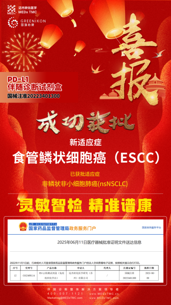 突破性进展! 迈杰医学PD-L1检测试剂盒获批新增食管鳞癌适应症——精准诊疗再升级,引领ESCC免疫治疗新纪元