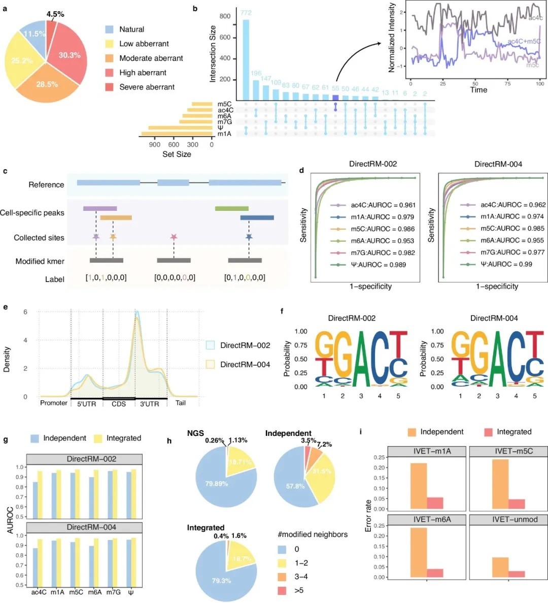 RNA的化学修饰曾被视为基因表达的微调旋钮,但因技术限制,科学家长期无法全面解析多种修饰的共存与互作。近日,福建医科大学陈鲲淇&西交利物浦大学孟佳/黄戴赟团队在国际知名学术期刊《Nature Communications》发表了一项最新研究成果——DirectRM工具,该工具首次实现对6种关键RNA修饰(ac4C、m1A、m5C、m6A、m7G、Ψ)的同步检测,不仅破解了传统方法单修饰检测的痛点,更揭示了修饰间的动态关联,为理解表观转录组的复杂调控网络打开了新窗口。