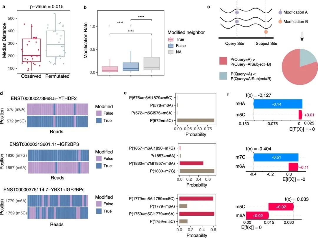 转录本水平:不同修饰倾向于聚集(距离更近),如m6A与m1A常相邻;