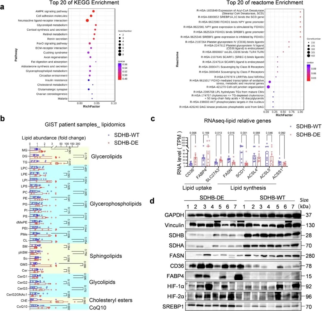 SDHB敲除增强胃肠道间质瘤细胞脂质摄取,奥雷巴替尼可逆转此效应