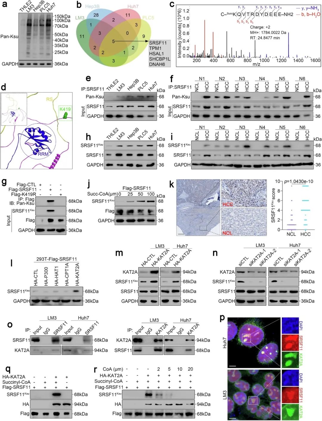 KAT2A驱动SRSF11第419位赖氨酸(K419)的致癌性琥珀酰化修饰