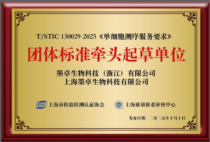 在新闻发布环节,由墨卓生物和欧易生物牵头起草的行业首个单细胞测序服务类团标(T/STIC130029-2024)正式揭牌。该标准由墨卓生物与欧易生物牵头,联合上海质量体系审核中心、上海市检验检测认证协会等近20家高校、企事业单位共同起草完成,凝聚了行业众多专家与企业的智慧与心血。作为本领域首个服务类标准,它首次对微生物单细胞测序服务提出了规范性要求,为行业的规范化建设和健康发展奠定了基础。
