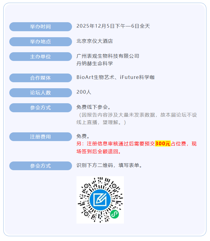 相约北京!2025表观遗传前沿理论与方法学术论坛将于12月5-6日召开,免费注册中!