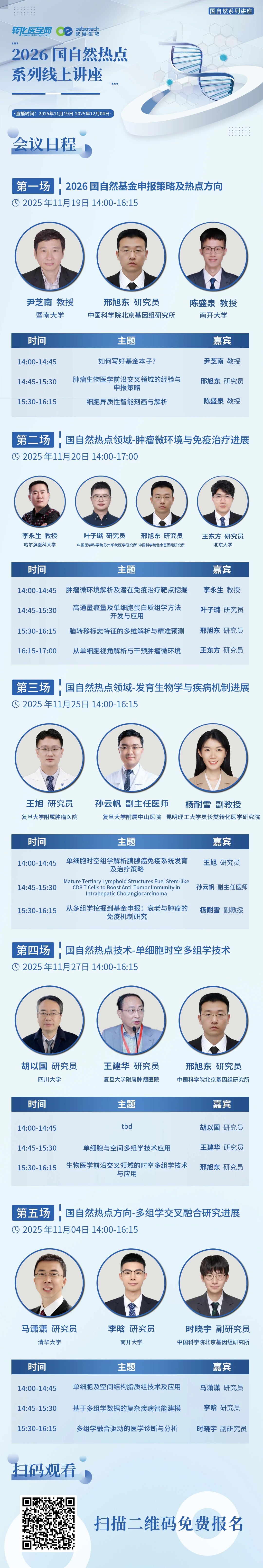 适合对象:科研院校、医院科研部门、科室主任、科研骨干、博士后及有志于申报国自然项目同仁们讲座形式:线上非开放预约讲座(免费)