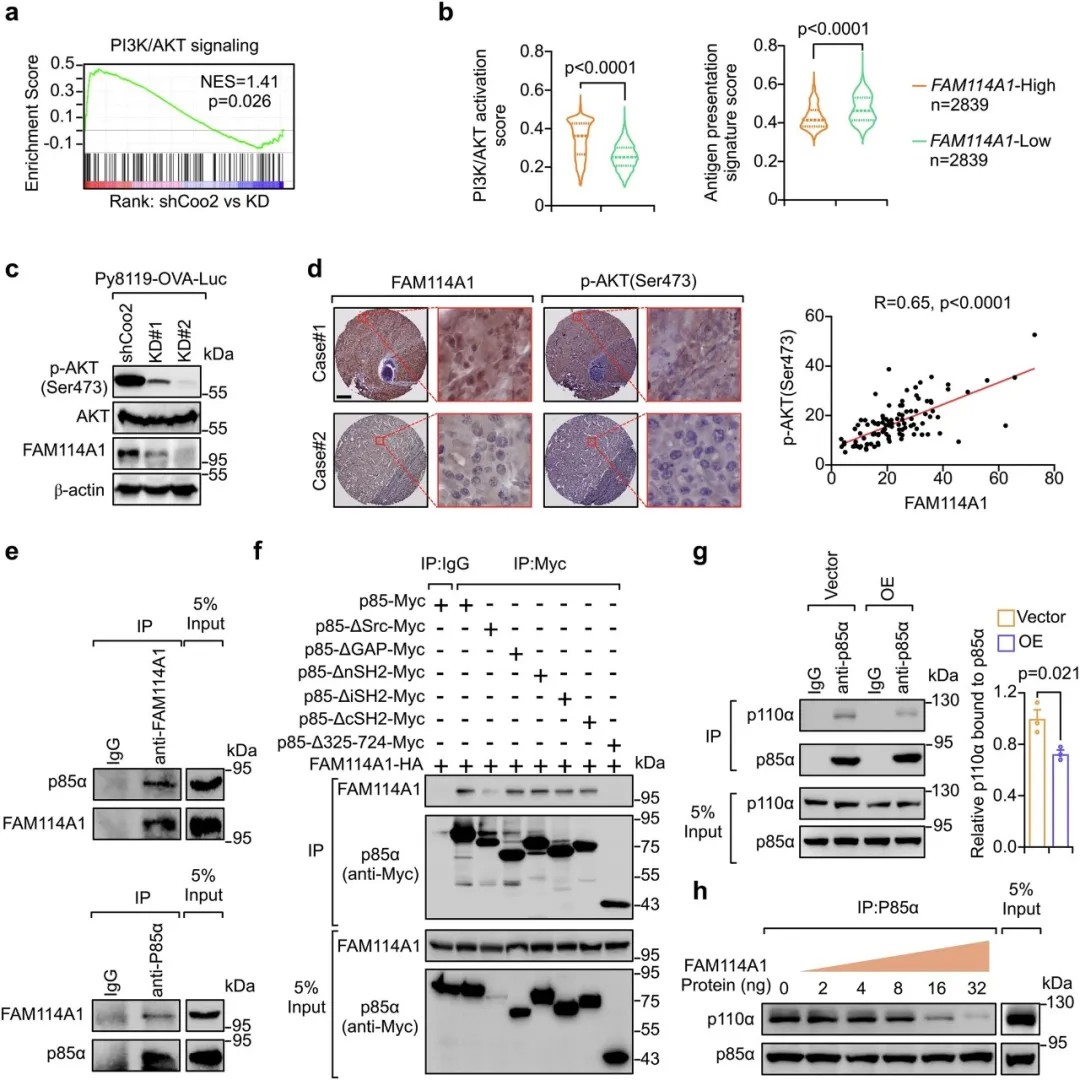 FAM114A1 激活 PI3K/AKT 信号通路并抑制抗原呈递