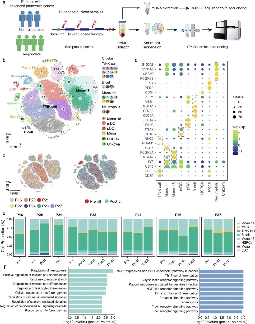 接受NK细胞疗法的APC患者免疫细胞的单细胞转录组分析