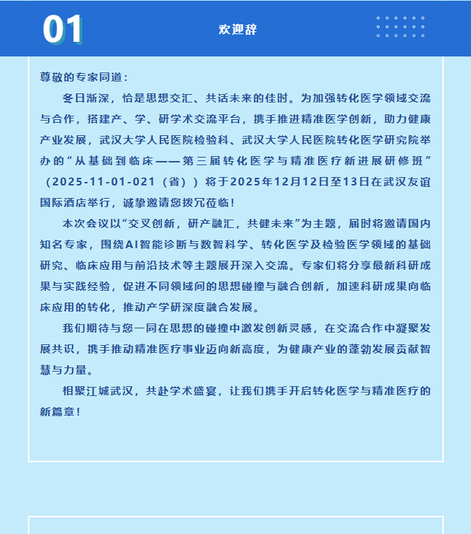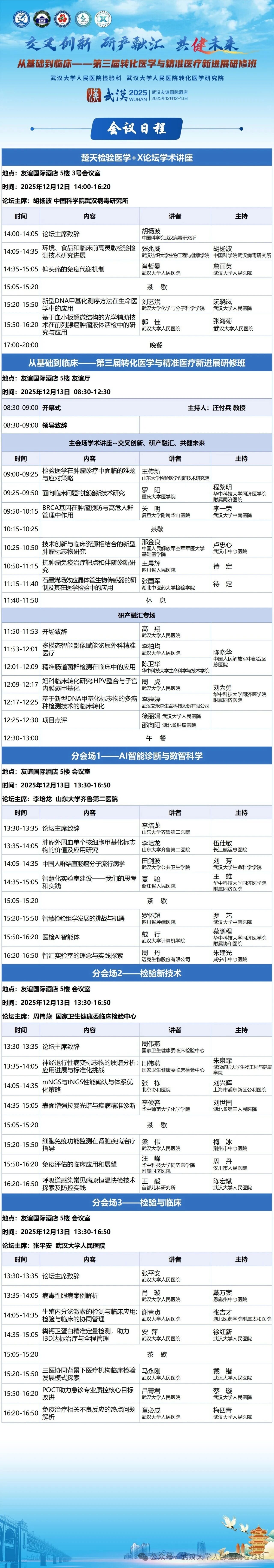 从基础到临床——第三届转化医学与精准医疗新进展研修班会议通知 武汉大学人民医院检验科 2025年11月30日 13:56