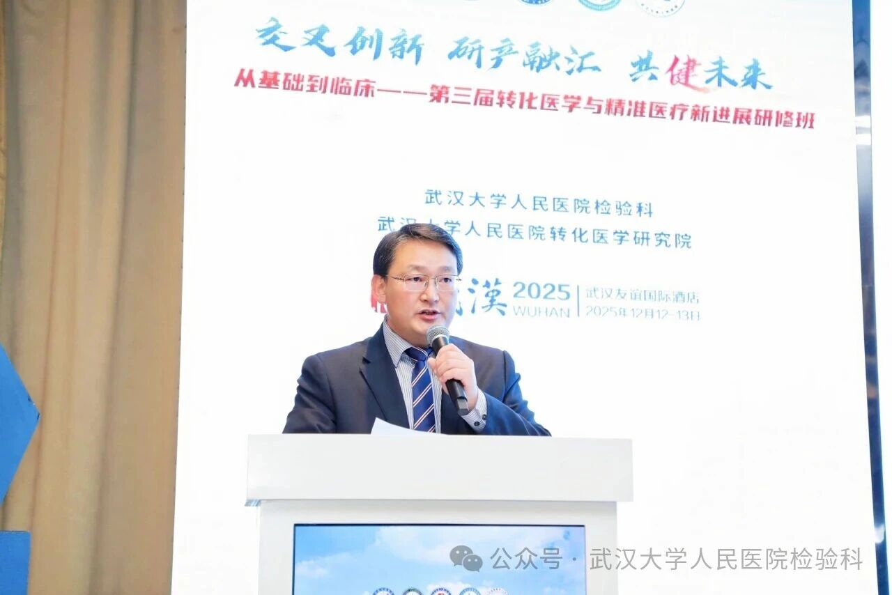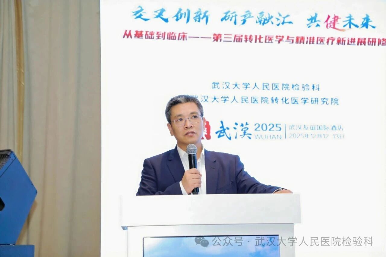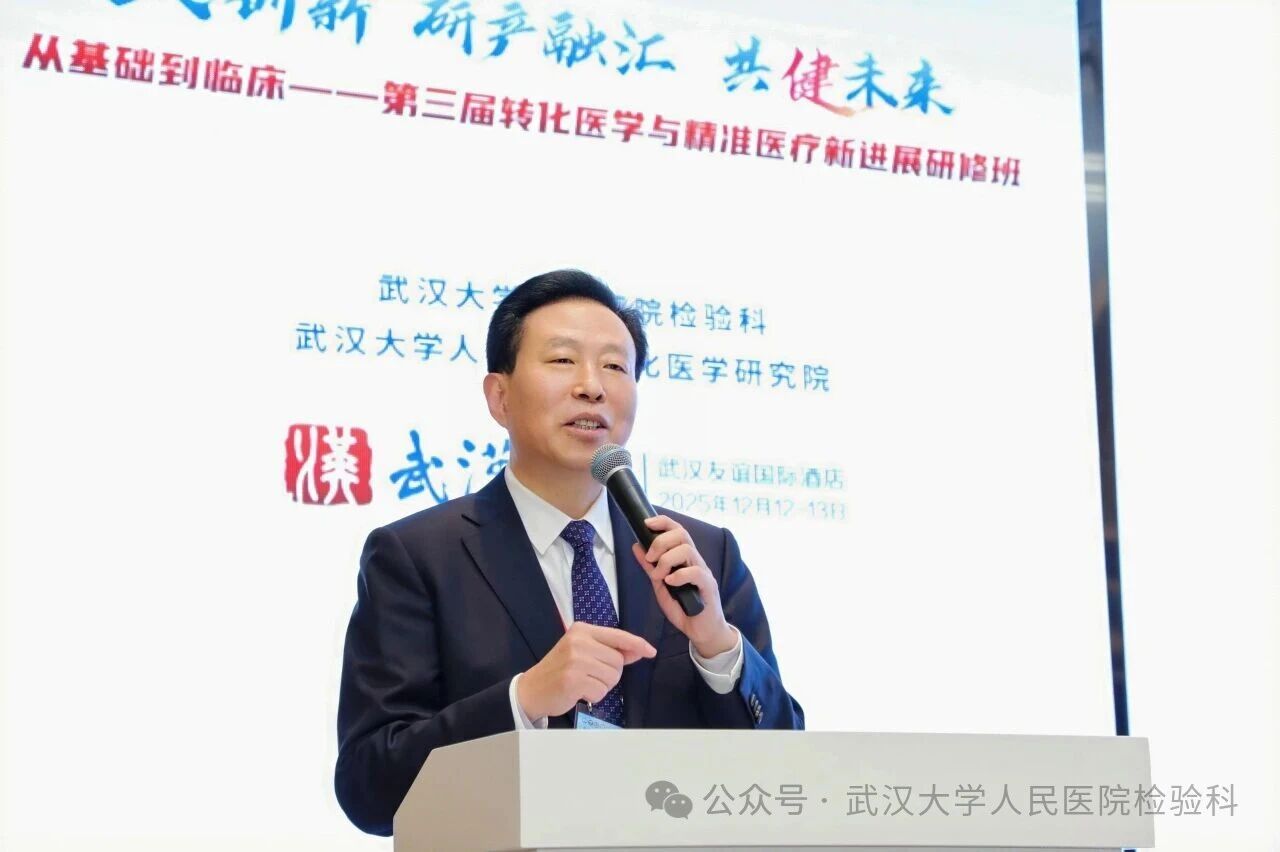 楚天冬韵集良策,真知灼见汇同行。2025年12月12日至13日,由武汉大学人民医院检验科、武汉大学人民医院转化医学研究院主办的“从基础到临床——第三届转化医学与精准医疗新进展研修班”,在武汉胜利召开。来自全国检验医学、转化医学、临床诊疗等领域的专家学者、青年骨干齐聚一堂,以“交叉创新·研产融汇·共健未来”为主题,通过“主会场+分论坛+研产专场”的形式,围绕前沿技术、临床转化、多学科协作等方向展开深度研讨,百家争鸣,共话未来。