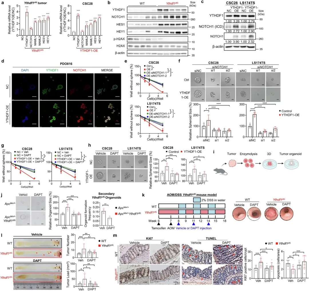 抑制NOTCH1信号(如使用γ-分泌酶抑制剂DAPT)可逆转YTHDF1驱动的化疗耐药。